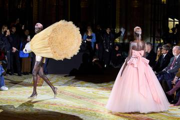 "Nous avons créé quelque chose qui est en quelque sorte impossible, cela défie la gravité ... Mais il est là, ce n'est pas une image", a-t-il poursuivi devant la presse en coulisse du défilé. C'est un jeu avec "les archétypes de la couture, nous connaissons tous le bustier, la jupe longue et nous les avons twistés en accord avec le langage du 21e siècle qui est absurde", a-t-il poursuivi.