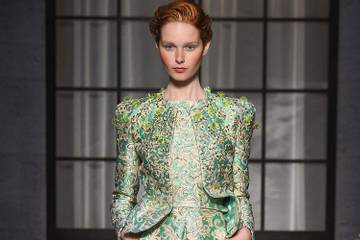 Ancien de Valentino, le créateur français Bertrand Guyon a rejoint en avril la griffe légendaire, qui a fait son retour sur les podiums en janvier 2014, après une pause de près de 60 ans. Il a expliqué s'être inspiré au départ d'Elsa Schiaparelli elle-même, quand elle était jeune, avant l'ouverture de sa maison de couture en 1935 place Vendôme. C'est là qu'avait lieu le défilé, auquel assistait la star méricaine Meg Ryan. "Ce qui m'intéressait, c'était ces silhouettes que l'on connaît un peu moins avec une austérité, une simplicité aussi, qui n'est pas l'image qu'on a spontanément d'Elsa Schiaparelli. Et en même temps le contraste avec l'extravagance qu'elle a quand même au fond d'elle-même", commente Bertrand Guyon. "Elle était probablement une femme plutôt réservée, plutôt timide, mais avec le sens du théâtre, de l'extravagance mais toujours mesurée, chic", fait-il valoir.