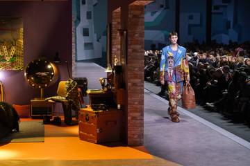 En ce qui concerne ses vêtements pour hommes, l'approche classique de la mode intemporelle a été abandonnée depuis longtemps dans cette maison. Ici, les jeunes d'aujourd'hui sont les clients de demain, et la boîte à malices de Vuitton ne s'adresse qu'à eux. La mode y est forte, que ce soit à travers des slogans, des imprimés ou des messages. Si vous enlevez le brouhaha, il ne reste que des pièces bien conçues, mais dépourvues de sens.