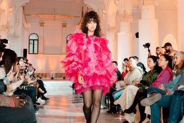Autre figure française : Eva Ruzanovic. D’origine réunionnaise, la jeune styliste a d’abord foulé les podiums de London Fashion Week en février 2026, avant de présenter à Tunis une collection inspirée de son île natale (la mer, le ciel, le métissage culturel), ponctuée de couleurs fluorescentes. Le savoir-faire local se retrouve à travers l’utilisation de matériaux comme le vacoa (plante tropicale) et les feuilles de palmier.