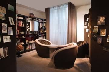 Nous sommes dans sa boutique située près du proche de l’hôtel d’Evreux. Côté cour, au 19 place Vendôme. Un boudoir que le créateur qualifie lui-même de « cabane de pécheur » et qui correspond en tout point à l’essence de son travail. « Je m’étais installé durant deux années, à deux pas d’ici (dans ce qui est aujourd’hui la nouvelle boutique Damiani ) de l’autre côté de l’Hôtel d’Evreux, mais l’endroit était trop grand, trop impersonnel. J’ai en quelque sorte fait mon coming-out en décidant de m’installer définitivement dans un endroit où je me sens chez moi, qui me ressemble ». On a effectivement l’impression de pénétrer dans un cabinet de curiosité très personnel, séparé en petits espaces judicieusement combinés. Bibliothèque, salon, boudoir. Quelques références personnelles bienvenues : une planche de surf s’allonge près d’un mur au ton mat. C’est chaleureux, confortable et chaque centimètre carré se fait l’expression d’un univers particulier. A l’étage, une extraordinaire collection de photos anciennes de la place Vendôme rappelle l’attachement réel du joaillier à ce lieu.