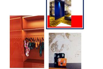 Les créatrices ont confié à Franklin Azzi le soin de réaliser ce premier écrin à l’image des collections de la marque. Sol en béton ciré sur lequel vient se poser une remarquable moquette vert olive, pans de mur en laque bleu foncé, cabinet de lingerie en laque havane, miroirs cannelés bronze, banquette en cuir perforé et lisse provenant d’une peausserie parisienne, mur laissé brut derrière le meuble de caisse ; les jeux de matières, indique le dossier de presse, ont été conçus « pour surprendre, rassurer et questionner ». Mais aussi pour fortifier les codes de la marque qui a d’ores et déjà assis sa présence dans le monde grâce à un réseau de distribution de près de 140 revendeurs sélectifs.
