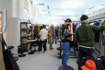 Sans oublier des incontournables, tels que Caterpillar, ou encore Aigle par Études Studio, le trio de créatifs nommé en 2020 à la direction artistique de la marque : l’évolution d’Aigle est patente, toujours outdoor, bien sûr, mais enrichie de nouvelles pièces élégantes, telles de superbes trenchs de laine, une matière nouvellement utilisée chez la marque. Dans un tout autre registre, Avnier, le label à collabs d’Orelsan était là, pour présenter ses collaborations, toujours inspirées par la musique, le design ou le cinéma. On aime aussi l’évolution de Jagvi, son vestiaire masculin très « Rive Gauche » (ces vestes et car-coat à carreaux bûcherons revisités !) mené par une démarche éco-responsable, notamment dans le choix des matières. À refaire, à revoir…