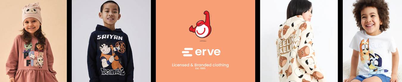 Erve is a European leader in character licences and brands. We produce branded fashion and apparel featuring TV, film, cartoon, and video game heroes. As part of Erve Group, we have eight offices across three continents, and we control the supply chain between raw materials and stores. Starting with our in-house design team and portfolio of licences – we source, produce, pack and transport collections at the request of major fashion retailers. With almost 40 years in the industry, our dynamic team values growth, transparency, and customer focus. Our exceptional quality and sustainable practices have earned us a reputation for excellence.