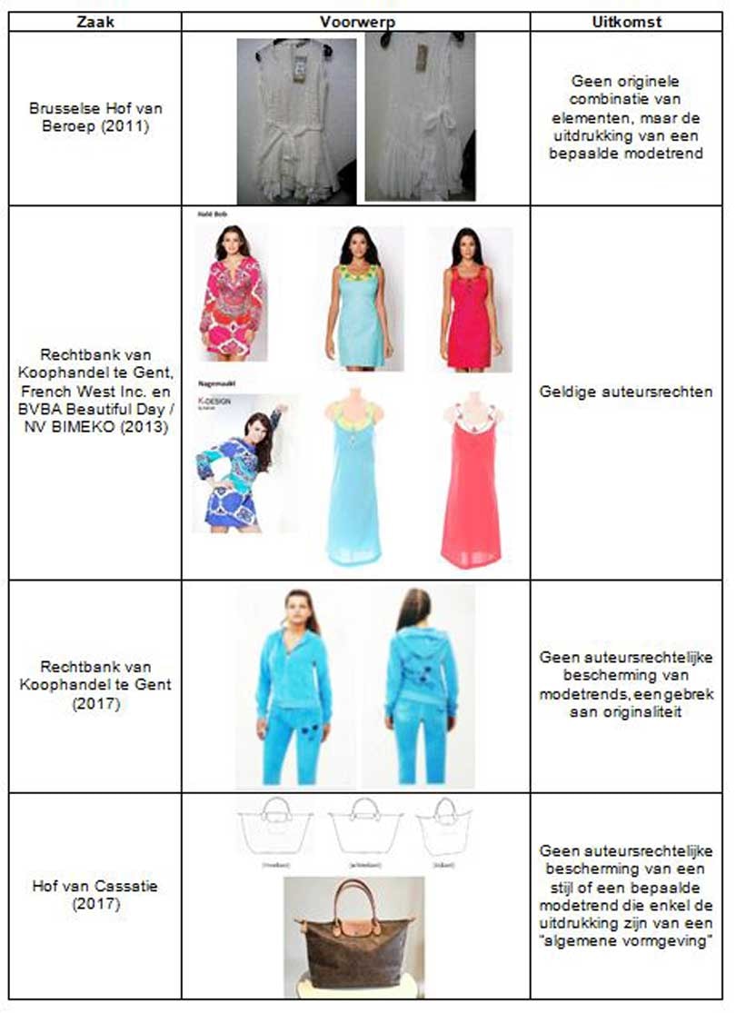 Enkele voorbeelden van modecreaties in de (Belgische) rechtspraak: