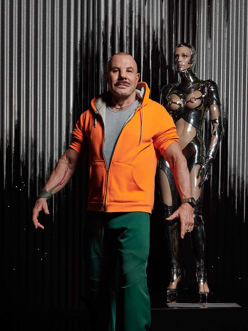 Voor wie Mugler nog niet kent, de ontwerper maakte in de jaren zeventig, tachtig en negentig furore met zijn futuristische ontwerpen en zijn femmes fatales die hij de catwalk opstuurde. Niet alleen werkte hij samen met een groot aantal sterren (Lady Gaga, David Bowie en Madonna om maar enkelen te noemen), hij liet ook het grotere publiek toe bij zijn shows. In 1984 zette hij een spektakel op poten in Parijs waar meer dan 6.000 toeschouwers op af kwamen (4.000 kochten een kaartje van bijna 200 franc) en waar 800 projectoren, 350 ontwerpen, 60 modellen en 40 kappers en visagisten voor werden ingezet. Als Mugler iets doet, dan doet hij het groot.