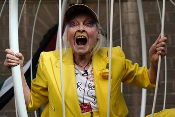 De gedachte dat er ter gelegenheid van haar mijlpaalverjaardag wordt teruggekeken op haar levensverhaal en carrière, moet voor Westwood een gruwel zijn. "Moeten we dit allemaal bespreken", klaagde ze in de documentaire ‘Westwood: Punk, Icon, Activist’, die in 2018 in première ging. "Dit is zo saai." Niet waar, natuurlijk. Bijna niets in Westwoods leven is saai. Maar in plaats van te kletsen over haar verleden geeft de mode-anarchist en activist, die vandaag tachtig wordt, er de voorkeur aan de aandacht te vestigen op haar politieke strijdpunten.