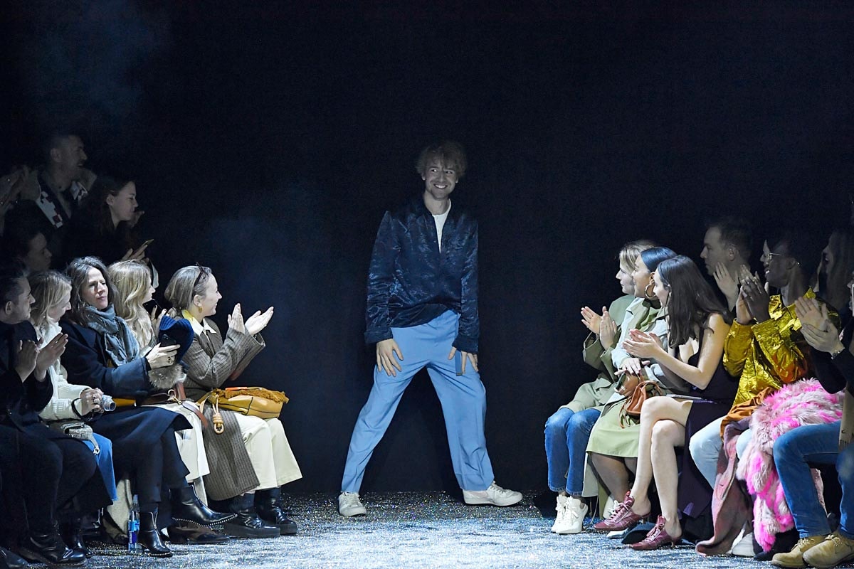 Fransman Boramy Viguier, een van de meest belovende Franse mannenontwerpers, presentatie in Parijs. Viguier werkte vier jaar voor Lucas Ossendrijver op het mannendepartement van Lanvin, en gaat sinds 2018 zijn eigen weg. Zijn collecties zijn heel technisch maar tegelijk romantisch (hij gebruikt zowel Japans nylon als coutureprints), en onder meer geïnspireerd door science fiction — met name het werk van de illustratoren uit het legendarische Franse stripblad Metal Hurlant.
