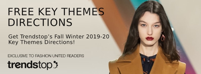 Lezers van FashionUnited krijgen gratis toegang tot het Fall Winter 2019-20 Key Theme Directions rapport van Trendstop, met alle onmisbare thema’s uit de modeshows van dit seizoen. Klik op de banner voor uw gratis rapport.