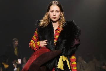 Het debuut van Daniel Lee als hoofdontwerper bij Burberry, gisteravond tijdens London Fashion Week, begon donker. Twee modellen in oversized, diepbruine trenchcoats met dennengroene bontkragen openden de show. Onder hun rechterarm droegen ze warmtekruiken in een dikke hoes met zwartblauwe Burberry-ruit erop. Daarmee was de toon gezet voor de collectie, die overliep van de Burberry-klassiekers en Britse symbolen met een knipoog, uitgevoerd in herfstige tinten.