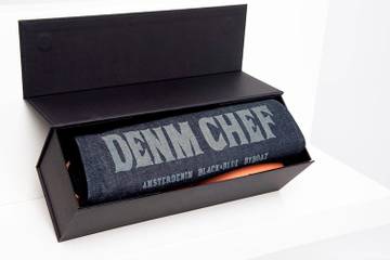 Het denim schort is vervaardigd in een gelimiteerde oplage van 50 stuks, allemaal voorzien van een genummerd certificaat, getekend door Benjamin Daniel. De helft is verkrijgbaar via Amsterdenim, de helft bij Black & Blue Nijmegen. DENM CHEF is verpakt in een speciale zwart “wijnkistje” met magneetsluiting en het DENM CHEF logo in blauw (Black & blue). Het ultieme vaderdagkado, of voor welke dag dan ook!