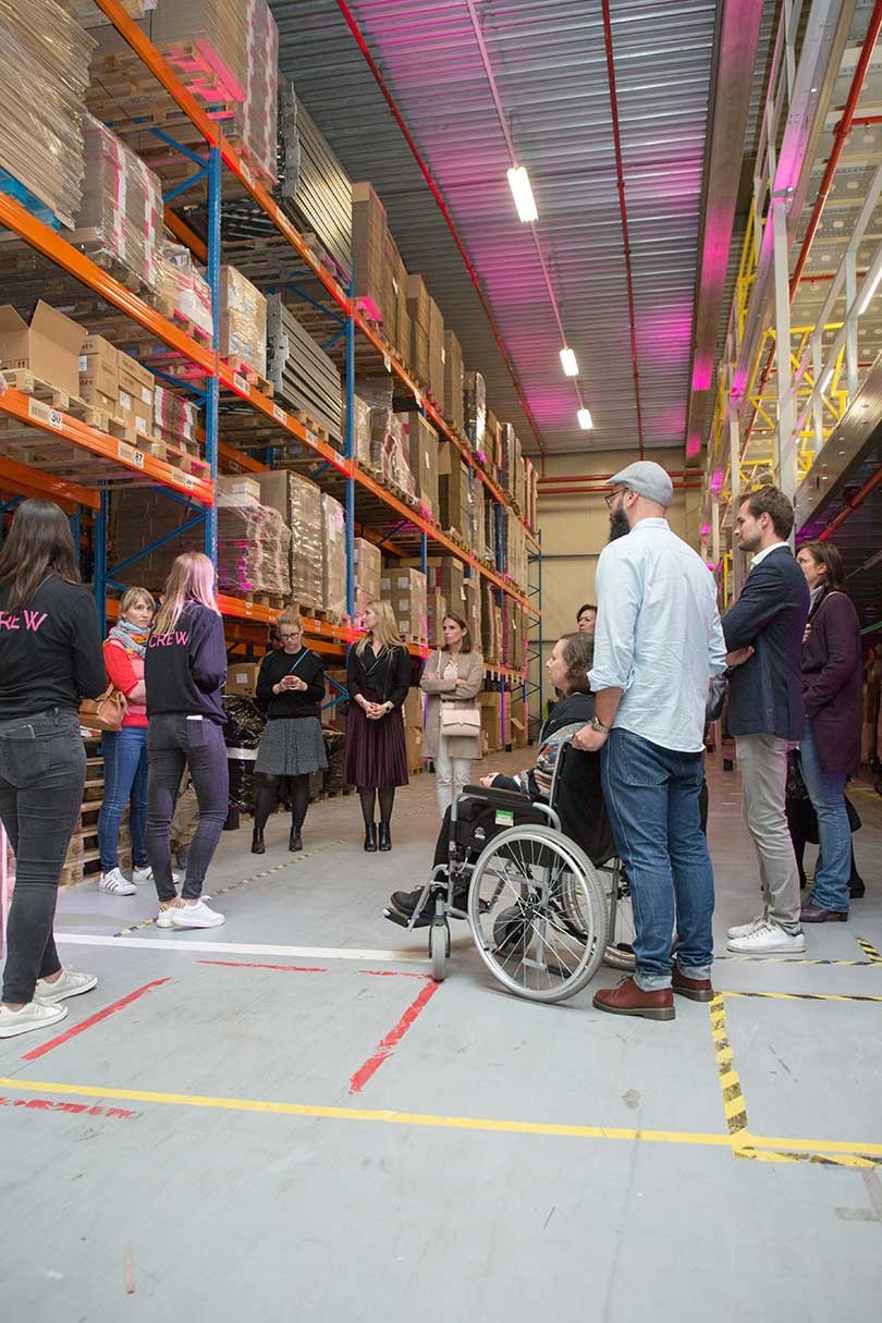 Het magazijn in Lot, Beersel verwerkt in een jaar ruim 3,2 miljoen pakjes. Dat zijn ongeveer 6 zo’n bestellingen per seconde, leert Vente-Exclusive.com FashionUnited. Maar wat speelt er zich allemaal af achter de schermen van een groot e-commercebedrijf? Tijdens de eerste editie van Sophie & the Fashion Factory (Sophie is de algemene naam voor de medewerker van de klantenservice. Onder deze naam worden ook de flash sales van de webshop aangekondigd) werden tweehonderd Vente-Exclusive.com klanten in groepen van tien door het warenhuis rondgeleid en leerden zij welke logistiek erbij komt kijken en hoe de medewerkers in het magazijn werken.