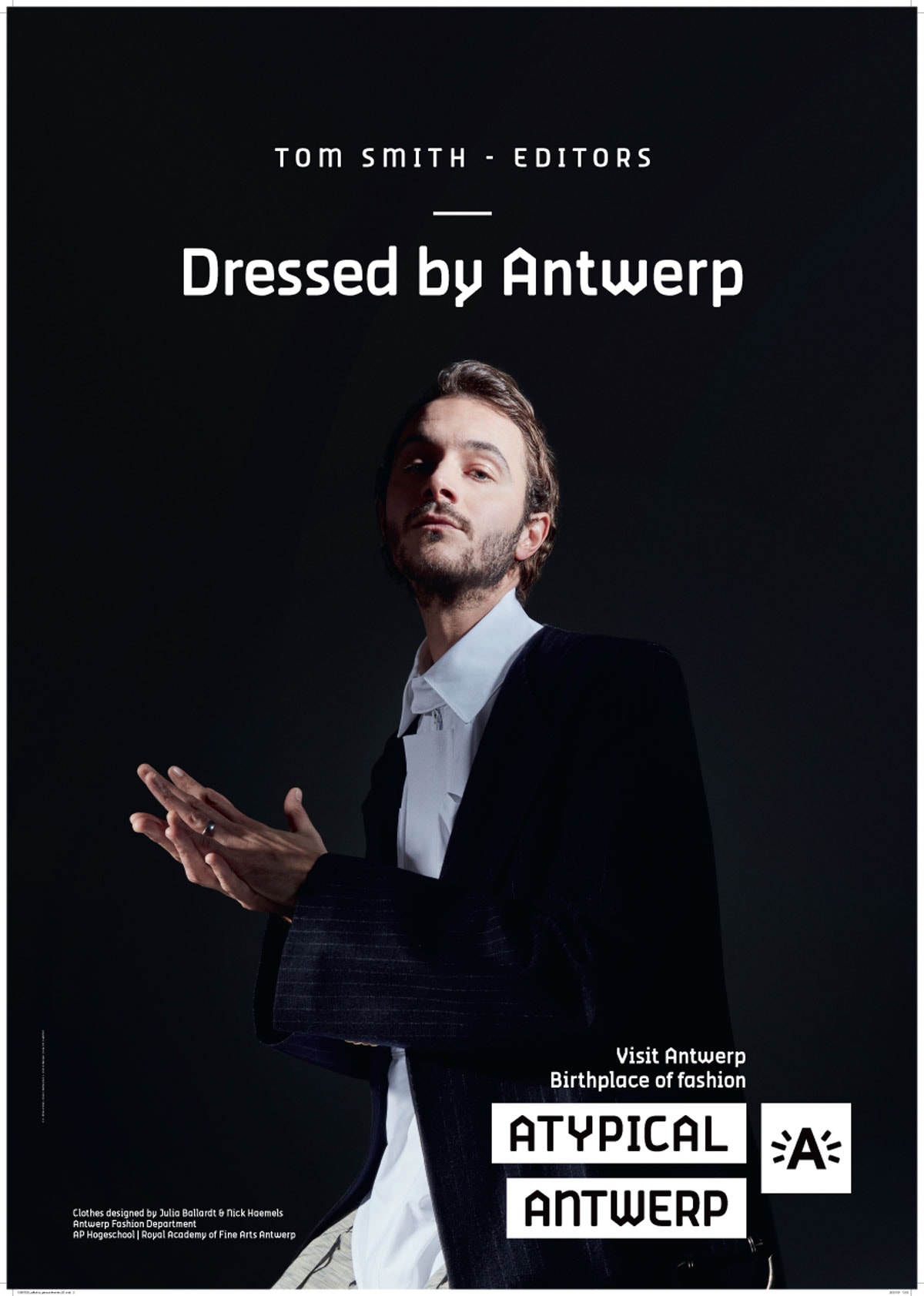 Tom Smith beschouwt zichzelf niet als de grote modekenner, maar droeg in het verleden wel al ontwerpen van Dries Van Noten en bezocht samen met de band zijn winkel en atelier in Antwerpen. “Ik bewonder het dat de stad haar modescene in de spotlights wil zetten. Dat klopt trouwens helemaal bij het beeld dat ik van de stad heb. Er heerst hier een speciale vibe: minder evidente, avant-garde ideeën in de kunsten worden hier omarmd.”
