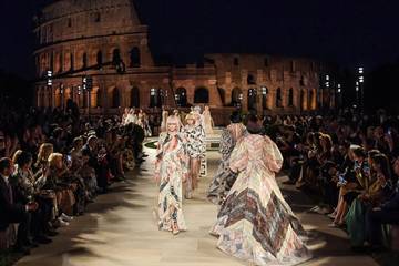 Ten overstaan van zeshonderd gasten, marcheerden de modellen door de Tempel van Venus en Roma in combinaties van harde en lichte materialen. Ontwerper Silvia Venturini Fendi, erfgenaam van de oprichters Edoardo en Adele Fendi, vertelde AFP het harde materiaal in de collectie op die manier naar een staat van lichtheid te willen brengen.