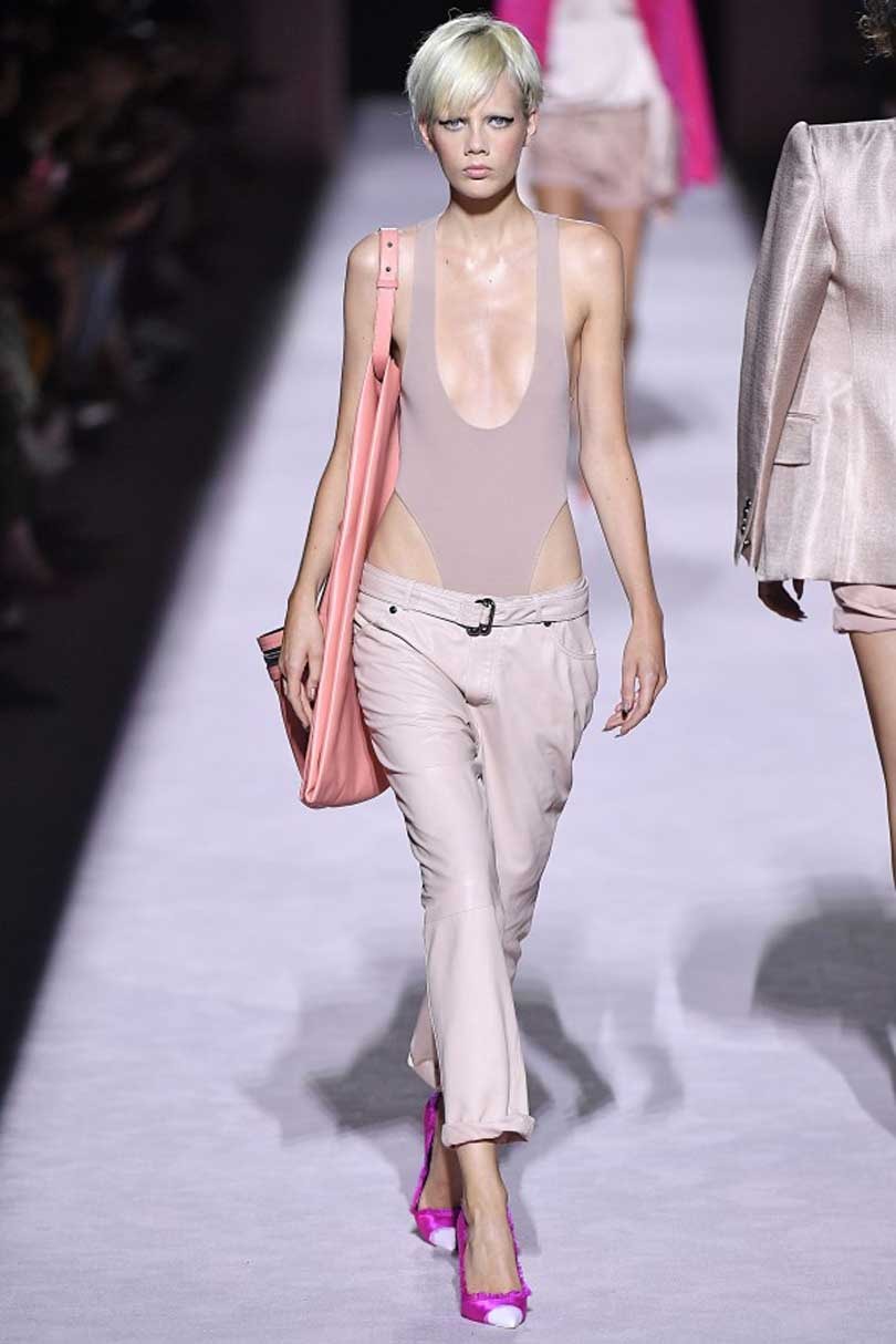 Een lichte kleurtint met een vleugje rozepaars. Een illustrerende outfit van Tom Ford.
