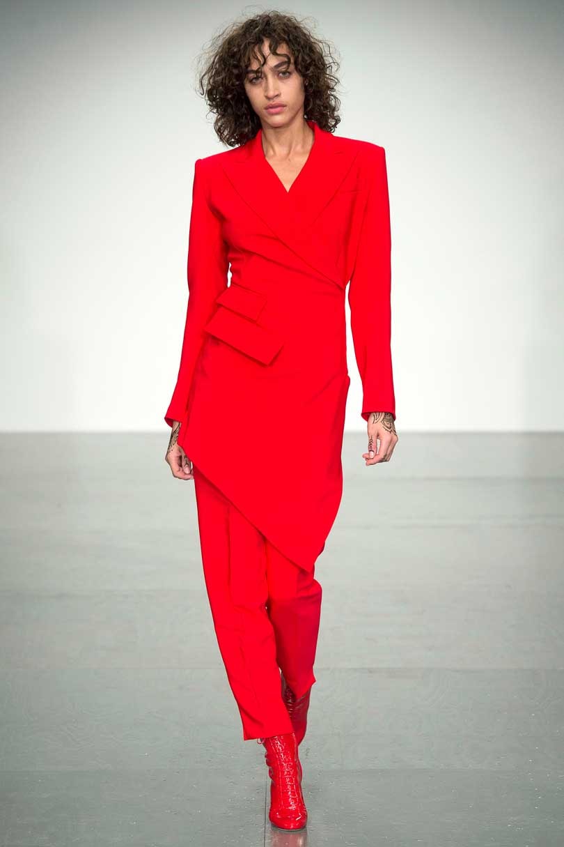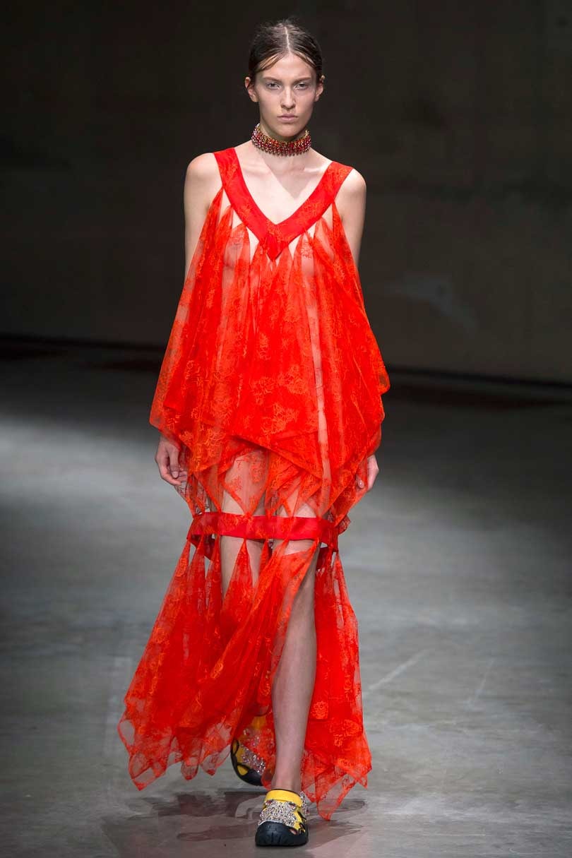 “Een stormachtig oranjerood die warmte en energie uitstraalt,” aldus Pantone. Victoria Beckham, Antonio Berardi, Christopher Kane en Paul Costelloe presenteerden de statement kleur Cherry Tomato in een jurk. In de honderdste show van Dries van Noten, waarbij hij zijn najaarscollectie 2017 onthulde, kwam een oversized pak in de kleur oranjerood terug op de catwalk. Ook Jil Sander en Max Mara waagden zich aan rode statement ensembles.