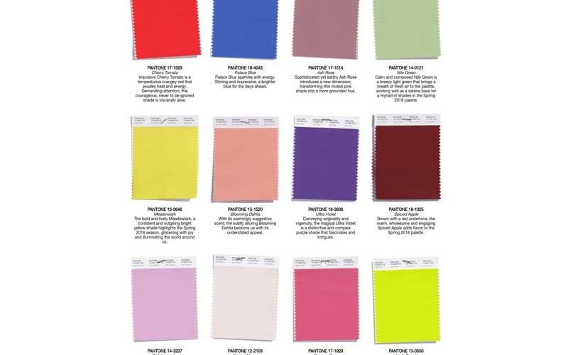 Kleurenkaarten modekleuren voor lente/zomer 2018, © Pantone.