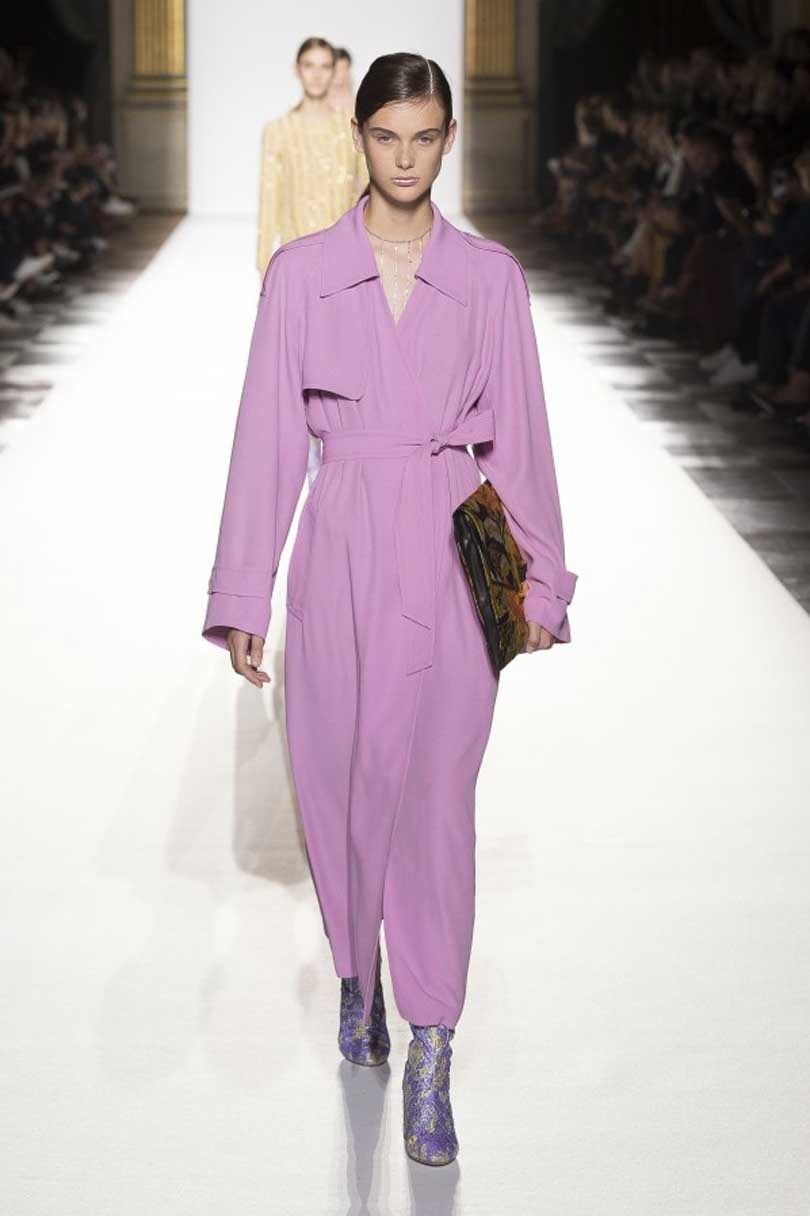 Een zachte, romantische violet roze. Dries van Noten voert een klassieke trenchcoat uit in de kleurtint. Ook Versace koos voor de kleur. Valentino presenteerde in zijn herfst/winter 2017/18 collectie roze mantels en een hooggesloten avondjurk.