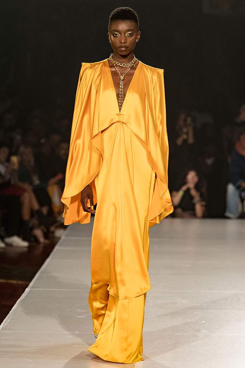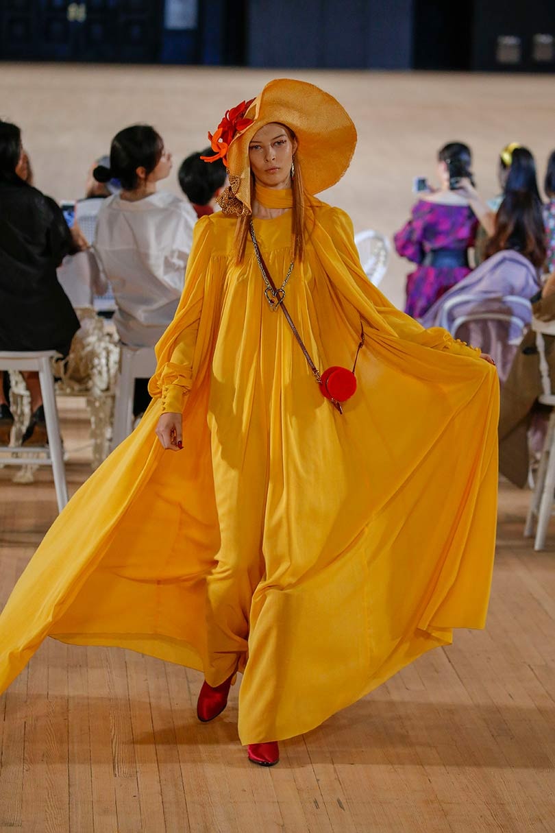 De warmgele kleur Saffron is tevens te zien bij Sally Lapointe, Pyer Moss, Brandon Maxwell, Christiano Siriano, Annakiki, Marc Jacobs, Bora Aksu, Tod's, Rejina Pyo en Supriya Lele.