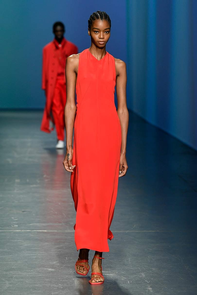 'Flame Scarlet straalt vertrouwen en vastberadenheid uit,' zo stelt Pantone. De knalrode kleur is te zijn bij Marine Serre, Elie Tahari, Marco de Vincenzo, Philosophy di Lorenzo Serafini, Boss, Vivetta, Valentino en Chromat.