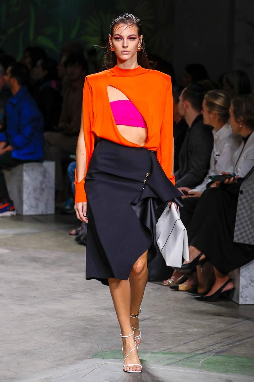 Na Living Coral, Pantone's kleur van het jaar 2019, blijft koraal voor lente/zomer 2020, zo voorspelt het instituut. Coral Pink is lichter en rozer. Brandon Maxwell toont hoe de koraalroze tint zich laat combineren met lichtroze en okergeel. Ook gespot op de catwalk bij Jonathan Simkhai, Christian Wijnants, Issey Miyake, Marques Almeida en Gucci.