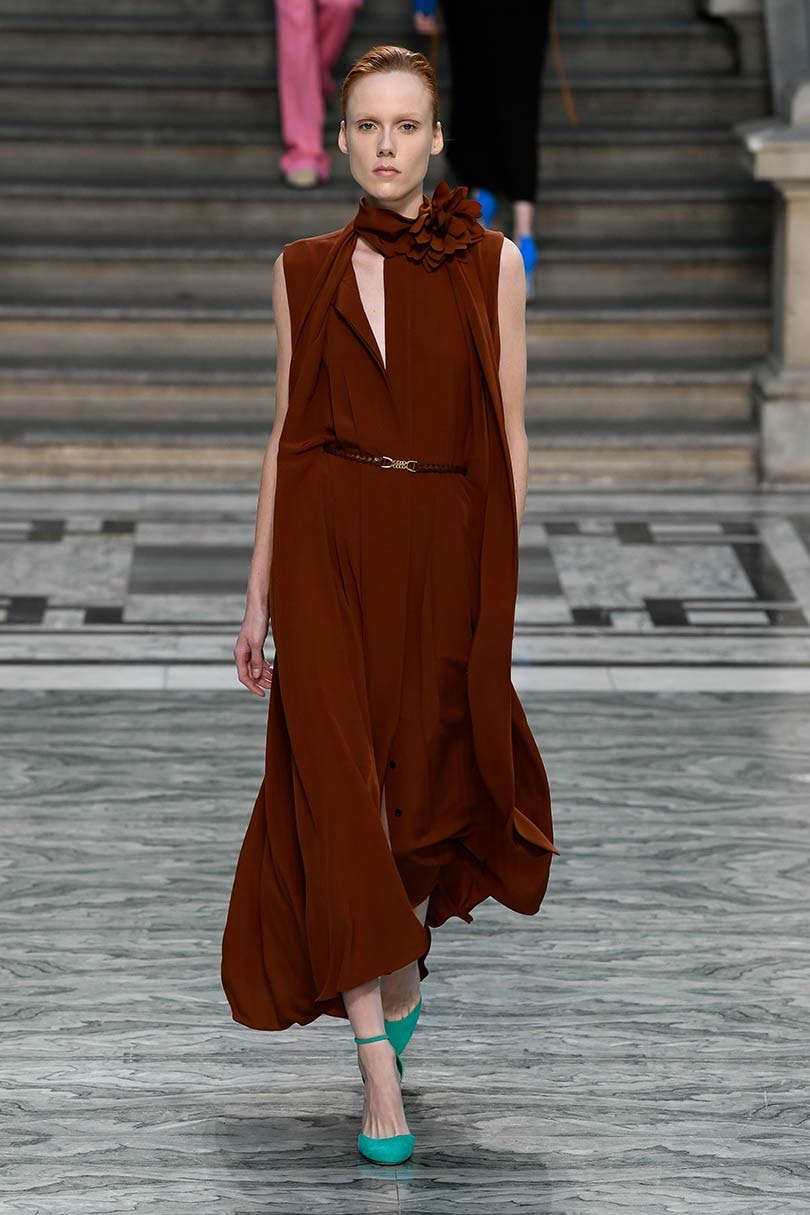 “Bruin rukt al langer op, maar nu is het de tijd om het groot aan te kondigen.” De komende dertig jaar zal het draaien om bruin, zo voorspelde trendgoeroe Lidewij Edelkoort op haar trendseminar herfst/winter 2020-21 in juni. Pantone heeft de warme aardetint Cinnamon Stick opgenomen in het SS20 kleurenpalet. Victoria Beckham en Bottega Veneta presenteren de bruintint op de catwalk. Bottega Veneta, het modehuis dat onder creatief leiding van Daniel Lee aan grote populariteit won, toont een leren trenchcoat en ribgebreide jurken in bruin, gecombineerd met nieuwe uitvoeringen van de gevlochten leren tas en sandalen met hak.