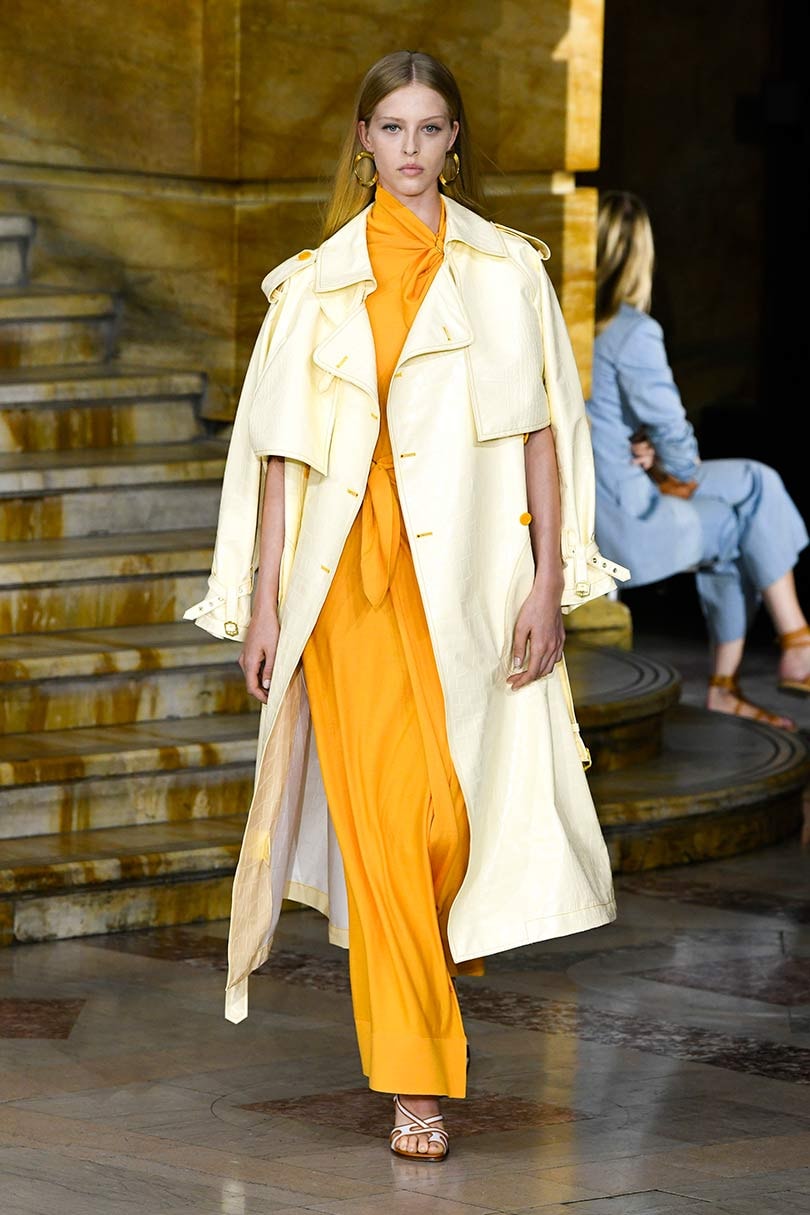 Geel blijft trendy. Pantone voorspelt dat saffraangeel (Saffron) en zachtgeel (Sunlight) modekleuren van lente/zomer 2020 worden. Sies Marjan en Arthur Arbesser tonen hoe de twee geeltinten zich laten combineren.