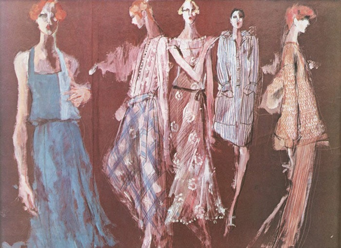 Handgemaakte tekeningen zijn prachtig als het talent je is gegeven, en je portfolio zou dit met trots moeten presenteren. Ga old school met een geïllustreerd ontwerp dat de pagina vult, en voeg daar een paar kleurstalen aan toe. Bekijk de tijdloze composities van modeillustratoren uit het verleden, zoals Kenneth Paul Block of René Gruau. Opzichtige gefotoshopte afbeeldingen als achtergrond van je illustraties leiden af, zijn onnodig, en op sommige scholen beschouwd als vloek. Ze leveren je geen ontwerpwerk op en compenseneren ook geen zwakke tekeningen.