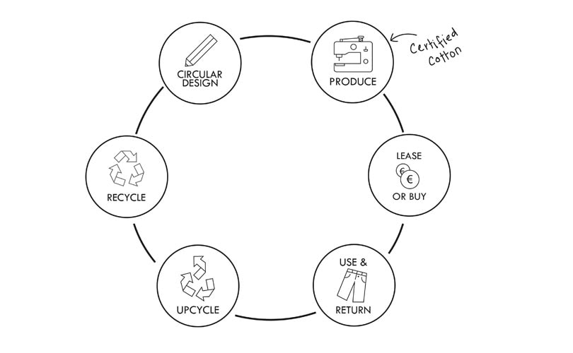 Lease ... a Jeans, a Suit, the Look ."Dit is de toekomst," zei Mud Jeans’ Bert van Son vijf jaar geleden tijdens de lancering van Lease a Jeans. "Bezit wordt minder belangrijk voor mensen. Consumenten willen wel toegang tot bepaalde producten of diensten wanneer ze die nodig hebben, maar steeds vaker worden die dan gehuurd of geleend in plaats van gekocht. Delen is niet alleen goedkoper, maar ook duurzamer," aldus Son in 2013. In de afgelopen vijf jaar heeft het merk ongeveer 8.000 Mud Jeans leasers gehad. Een Mud Jeans leasespijkerbroek kost 20 euro en vervolgens 7,50 euro per maand gedurende een jaar. Aan het einde van het jaar kan de klant zijn broek bijhouden of inruilen voor een nieuw paar. Mud Jeans hergebruikt de grondstoffen. “In elke broekzak van een nieuwe jeans zit een retourovereenkomst, waarbij de klant belooft de jeans nooit weg te zullen gooien als vuilnis, maar altijd als katoen zal blijven zien. Op die manier krijgen we ook alle verkochte broeken bij ons terug om te shredden en vervolgens te gebruiken voor het maken van nieuwe Mud Jeans,” aldus een woordvoerder.