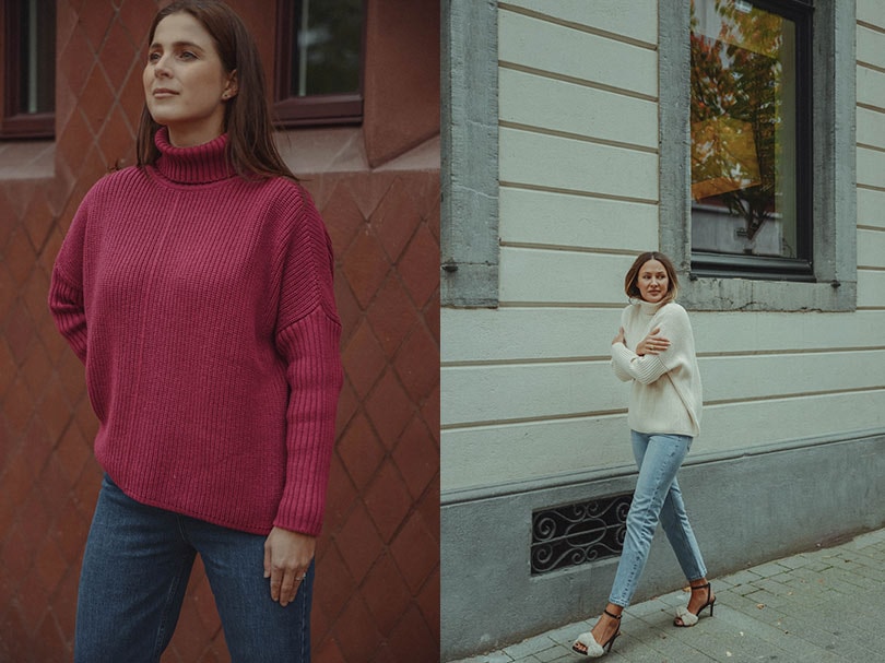 “Blindelings voorspellingen volgen doen we nooit. Mensen omarmen hun nieuwe levensstijl: lazy Sundays, wandelen in de natuur… Loungewear is dus een blijver, maar het moet geen overkill worden, het mag ook iets meer zijn. De kleurtrends houden we erg goed in de gaten, voor de productmix vertrouwen we op onze intuïtie. In onze vorige jobs kochten we in voor grote groepen als Euroshoe en JBC, met drie à vierhonderd winkels hoort daar veel cijferwerk bij. Maar mode blijft iets esthetisch en gevoelsmatig. We zullen nooit iets kopen, puur omdat het commercieel slim is. We moeten het zelf willen, klanten shoppen eigenlijk in de walk-in closet van Les Soeurs. Het heeft ook geen zin om terug te kijken naar de periode voor corona, toen deden broeken en jurken het goed, nu vooral truien.”