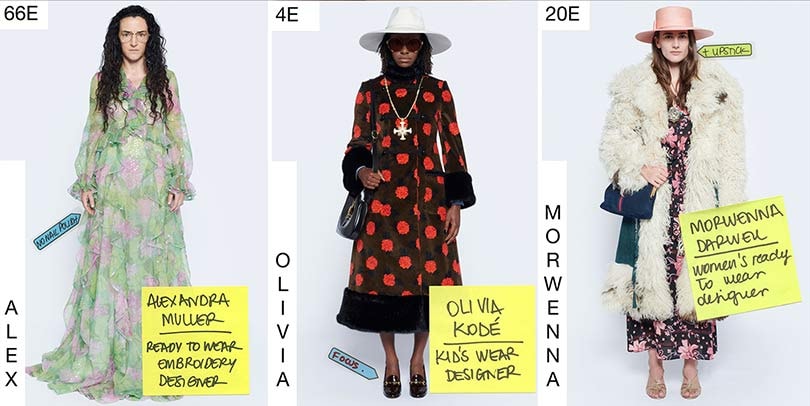 Gucci omarmde ondertussen het digitale proces volledig met een spannende 12 uur lange livestream achter de schermen van een reclamecampagne, geleverd aan specialistische cafés, bars en restaurants in Rome, Parijs, Milaan, Madrid en Moskou. De co-ed ‘Epilogue’ collectie werd gestyled en gefotografeerd met leden van het ontwerpteam van Alessandro Michele als modellen, gevolgd door een officiële presentatie. Redacteuren en influencers van over de hele wereld ontvingen groenten van biologische boerderijen als symbool van imperfecte schoonheid.