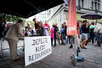 Schone Kleren Campagne voert actie tegen fast fashion vlakbij Primark Gent