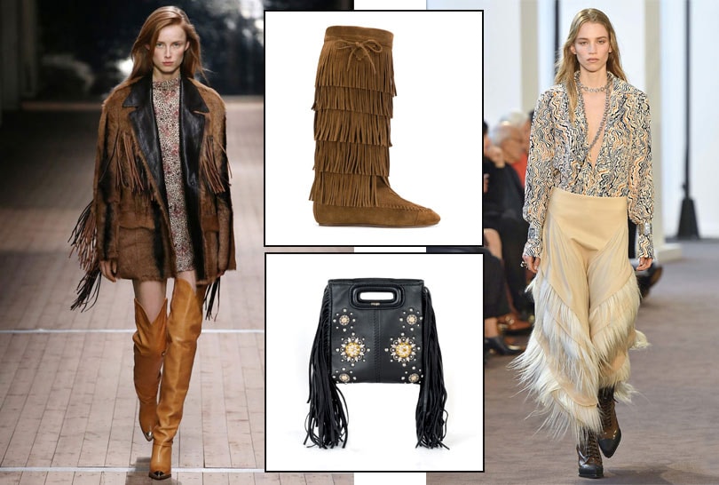 De Western trend vereist franjes. Bewegingen worden versterkt, de franjes dansen en geven een look leven. In het ready-to-wear segment (mantels, jacks of blouses) maar vooral op het gebied van accessoires vernieuwt het een garderobe. Wil je als winkelier een last-minute aankoop doen, kies dan voor tassen met franjes. Het is laagdrempelig en de tas kan een klassieke jurk op een makkelijke manier naar een hoger niveau tillen.