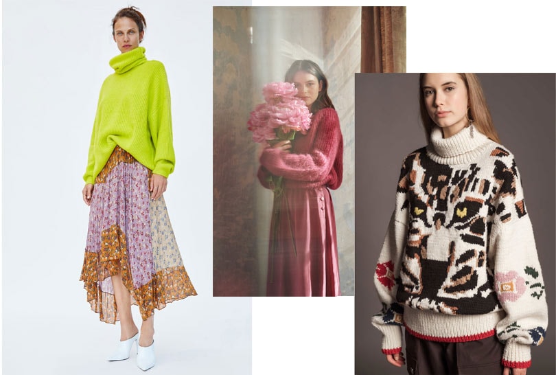 Knitwear is nog steeds populair. Dit najaar moeten gebreide truien en vesten met oversized pasvorm de vrouwelijke consument verleiden. Kleur is een vereiste, ga voor knal- of zelfs fluoriserende kleuren. Nadat meerdere grote merken mohair in de ban hebben gedaan (Gap, H&M, Topshop..), geven ze nog steeds de voorkeur aan zachte materialen maar letten wel beter op de samenstelling en het verhaal achter het product. Het draait om ethische verantwoordelijkheid.