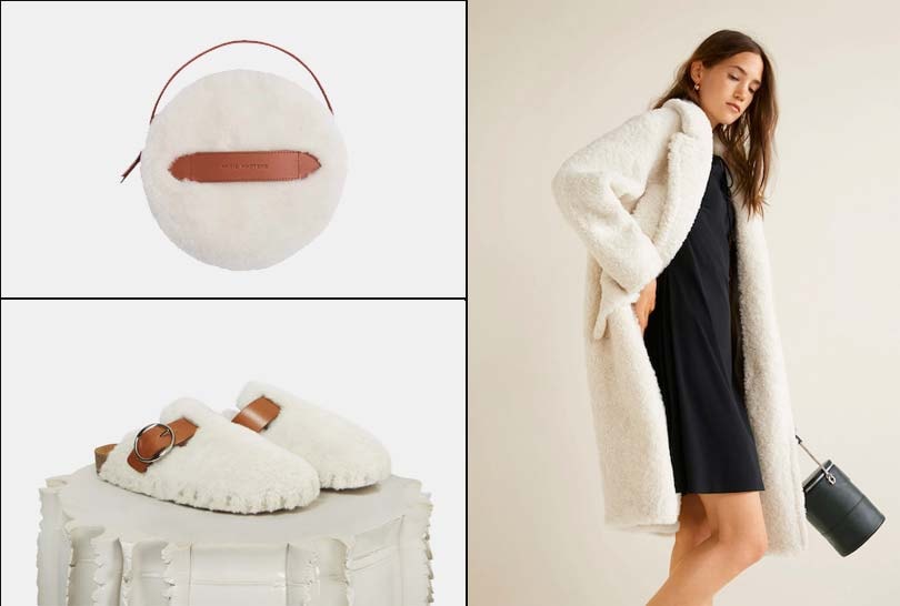 Hét modemateriaal voor het herfst/winter 2018. Stijlvol en rustiek, schapenbont is een grote trend in de mode en accessoires (nepbont is tevens welkom). Het zachte en warme materiaal kan op verschillende manieren gedragen worden. Schapenbont wordt niet alleen gebruikt voor kledingstukken (mantels, jacks) en ter decoratie (kragen), maar is ook een geliefd materiaal in de schoenen en tassen branche voor een nomadische touch. Het natuurlijke materiaal kan ook uitgevoerd worden in kleur voor een modernere look (Prada, Zadig & Voltaire).