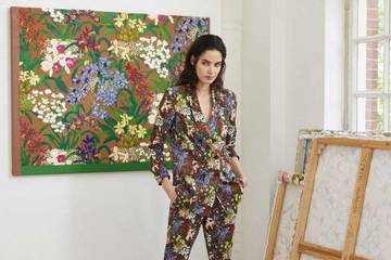 “Wij bezochten het Flower Art Museum in Aalsmeer, waar verschillende kunstenaars zich voor hun kunstwerken hebben laten inspireren door bloemen. Het werk van Arjan sprong er voor ons gelijk uit,” zegt Jeanine Lindenberg, head of design women van WE Fashion, in het bericht. Van Arendonk staat bekend om het bewerken van vintage materialen met acrylverf, kleurrijke siliconen en verfijnde borduursels. “Zijn manier van ‘hergebruik’, het specifieke materiaalgebruik, de gelaagdheid en de intense kleuren, hiermee zagen wij prachtige prints voor ons,” aldus Lindenberg.