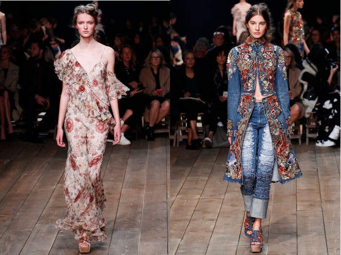 Iedereen heeft het over de Alexander McQueen zomercollectie van de hand van Sarah Burton. Burton maakte de meest romantische collectie van allemaal: lange frèle jurken met ingeweven bloemmotieven en rushes, en denim met afwerkingen op coutureniveau. Burton lijkt de zwartgalligheid van de oprichter en naamgever van het huis van zich te hebben afgeschud. Nu is ruimte voor licht en lucht en voor een beeldschone collectie.