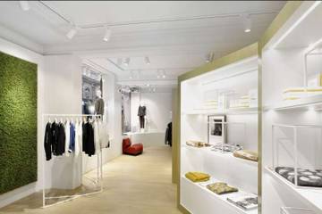 Voor de winkelindeling is gekozen voor wandpanelen van gerecycled aluminium: een primeur voor België. Ook is er gekozen voor een wand met echt mos, afkomstig uit Finland. “Dat herinnert mij aan het intense groene landschap in Zuid-Ethiopië,” aldus Vertriest. Maar ook zijn Brusselse afkomst komt terug. “In mijn thuisstad vond ik objecten die eerder het decor maakten van bekende Brusselse gebouwen: twee vintage Herman Miller zetels van de RTBF en 70s spiegels uit het De Ligne gebouw.”