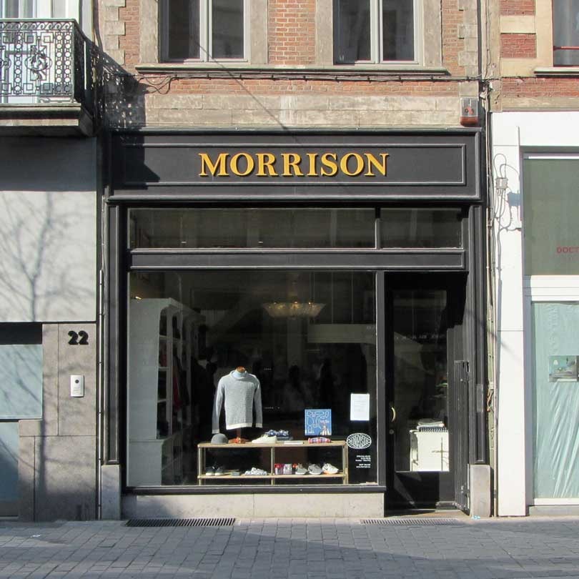 Vlakbij het Antwerpse Modemuseum ligt mannenshop Morrison. De broertjes Olyslagers verkopen er de collecties van hun internationaal gesmaakte breiwerklabel Howlin' (een vervolg op het modemerk dat hun ouders ooit hadden), maar ook accessoires, muziek, zines en herenkleding van hippe labels als A Kind Of Guise, Veja, Stan Ray, Stutterheim, Beams+, Novesta en vele anderen.