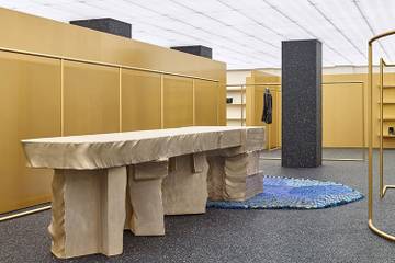 Acne Studios heeft een nieuwe flagshipstore geopend in New York, de eerste vestiging van het Zweedse modemerk in het stadsdeel Upper East Side. De inrichting heeft het minimalistische handschrift van het modelabel, maar ook een opvallend uiterlijk door het veelvuldig gebruik van de kleur goud.
