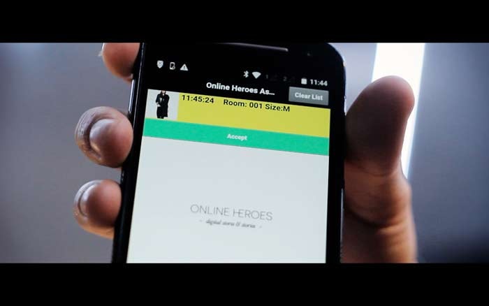 Wanneer een consument de digitale paskamer van Online Heroes betreedt met een stapel kleding over zijn of haar arm, zorgen Radio Frequency Identification (RFID) labels in de items ervoor dat de paskamer deze herkent. Op de spiegel, die is uitgerust met een scherm, wordt vervolgens een kort videofragment afgespeeld. Hierin zijn de meegebrachte items te zien wanneer ze worden gedragen met bijpassende kleding op bijvoorbeeld een catwalk. Zodra het filmpje is afgelopen, verschijnt aan de rechterkant van de spiegel de productinformatie van de kledingstukken. En dat allemaal zonder dat de klant ook maar iets heeft hoeven doen: “We wilden de klant niet verwarren met technische toeters en bellen, maar juist iets eenvoudigs neerzetten waardoor hij of zij het merk kan beleven.” Het betekent overigens niet dat de consument met de komst van de digital fitting room geen invloed meer heeft op zijn paskamerervaring: klanten die niet zijn geïnteresseerd in het videofragment of de productinformatie kunnen ervoor kiezen deze niet te laten weergeven. Maar Sangers denkt dat de nieuwe merkbeleving in de digitale paskamer uiteindelijk leidt tot datgene waar retailers het uiteindelijk voor doen: een hogere omzet.
