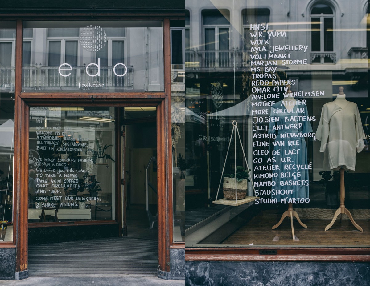Edo Collective bevindt zich in een schitterend pand in de Lange Koepoortstraat, centrum Antwerpen in een voormalige drogisterij. Het interieur is strak en modern, tegelijkertijd rustgevend en gezellig. Klinkende namen zoals HNST Jeans, w.r.yuma, Marjan Storme, Vol+Maakt, Stadshout, Redopapers, Eline Van Ree, Mambo Baskets en Helder maken onder andere deel uit van Edo Collective.