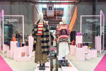 Foto 1 en 4: Premium-Stand van Essentiel Antwerp; Foto 2: Oprichters Esfan Eghtessadi en Inge Onsea. Foto 3: Essentiel Antwerp winkel in Keulen; Alle beelden met dank aan Essentiel Antwerp.