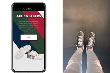 Via de iOs app van Gucci kunnen shoppers Ace sneakers van het Italiaanse luxemerk passen. Virtueel dan. Door middel van Augmented Reality (AR) kan de klant de verschillende stijlen 'proberen' aan zijn eigen voeten. Het werkt als Snapchat filters. Bevalt de gymp? Dan kan de shopper direct doorklikken naar de webshop.