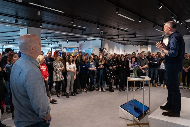 De opening gaat gepaard met veel toeters en bellen - met personalisation events voor influencers en modepers, en een uitgebreide persconferentie waar zelfs Antwerps Schepen voor Mobiliteit Koen Kennis en Group President VF EMEA Martino Scabbia Guerrini naar afzakken. Olivier Gay legt uit: "Het is een grote gebeurtenis voor VF, het is belangrijk dat alle merken nu onder een dak zitten het geeft een meer corporate gevoel. Voor Kipling zelf is er het back to the roots-verhaal, perfect net op het moment dat we de creatieve visie herlanceren. Die rebranding drong zich op omdat we ons niet meer goed voelden bij wat we deden. Het was tijd om het merk te herzien maar tegelijk trouw blijven aan onszelf, de heritage, onze identiteit. We wilden opnieuw een jonger publiek aanspreken. Ik denk dat het met deze collectie prima gelukt is. We zien hier de producten mooi uitgestald en raken geïnspireerd door ons DNA én heritage. Het geeft ons de energie uit het verleden, samen met nieuwe inspiratie. Het betekent een beetje de hergeboorte van het merk. De designafdeling heeft het voorbije jaar hard gewerkt om het merk in een nieuwe vorm te gieten, de communicatie is veranderd en met deze verhuis is dit dag één van het nieuwe leven van Kipling.”