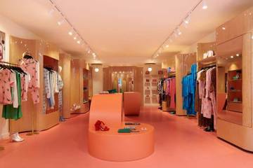 In Haarlem kan men niet om de oudroze winkel van Fabienne Chapot heen. De gekleurde gevel met unieke ramen springt er echt uit. Het interieur is gekenmerkt door ronde vormen, uitgesproke kleuren en verfijnde materialen. Wat ook opvallend is dat steeds meer merken ervoor kiezen geen traditioneel kassablok meer te verwerken in het concept. Fabienne Chapot kiest in het nieuwe concept ervoor om af te rekenen per tablet. Een leuk detail in het concept: de ‘ring for champagne’-bel in de pashokjes.