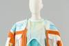 “Ik wilde mijn eigen stoffen ontwerpen voor de wedstrijd. Daar ben ik eigenlijk mee gestart. Mijn inspiratie haalde ik uit het gebruik van geometrische vormen in verschillende culturen - etnische prints. Ik heb mij gefocust op het feit dat we in de toekomst nog makkelijker en sneller kunnen reizen en culturen nog meer in elkaar gaan overlopen. Hierbij is het digitale aspect heel belangrijk. Ik heb alle prints zelf ontworpen en digitaal laten printen op zelfgekozen stoffen. Alle prints zijn een digitale bewerking van etnische geometrie. Vormelijk vertaalt het idee van de moderne reiziger zich in een jas met opgewerkte rugzak en heel wat extra zakken. De vele lagen van kledij en soorten materialen is een knipoog naar de wisselende klimaten en de reiziger die zich makkelijk dient aan te passen aan het klimaat.”