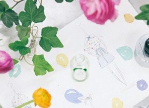 De ontwerpen zijn voorzien van prints die gebaseerd zijn op Gazinskaya’s tekeningen. De viltstift-krassen-print, haar signatuur, heeft de ontwerpster voor de samenwerking met het zusje van H&M vernieuwd. Ook is er een jurk voorzien van een paardenbloemprint en zijn sleehakpumps voorzien van polkadots in pasteltinten.