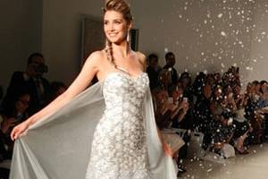 Ontwerper Alfred Angelo staat bekend om zijn Disney bruidsjurken. Deze keer liet hij zich inspireren door de sprookjesfilm 'Frozen'. Net als hoofdpersonage Elsa draagt het model een lichtblauwe jurk, bestaande uit een lijfje met sweetheart neckline, bedrukt met glimmende sneeuwvlokken en een doorzichtige cape. De look wordt compleet met het ingevlochten kapsel.